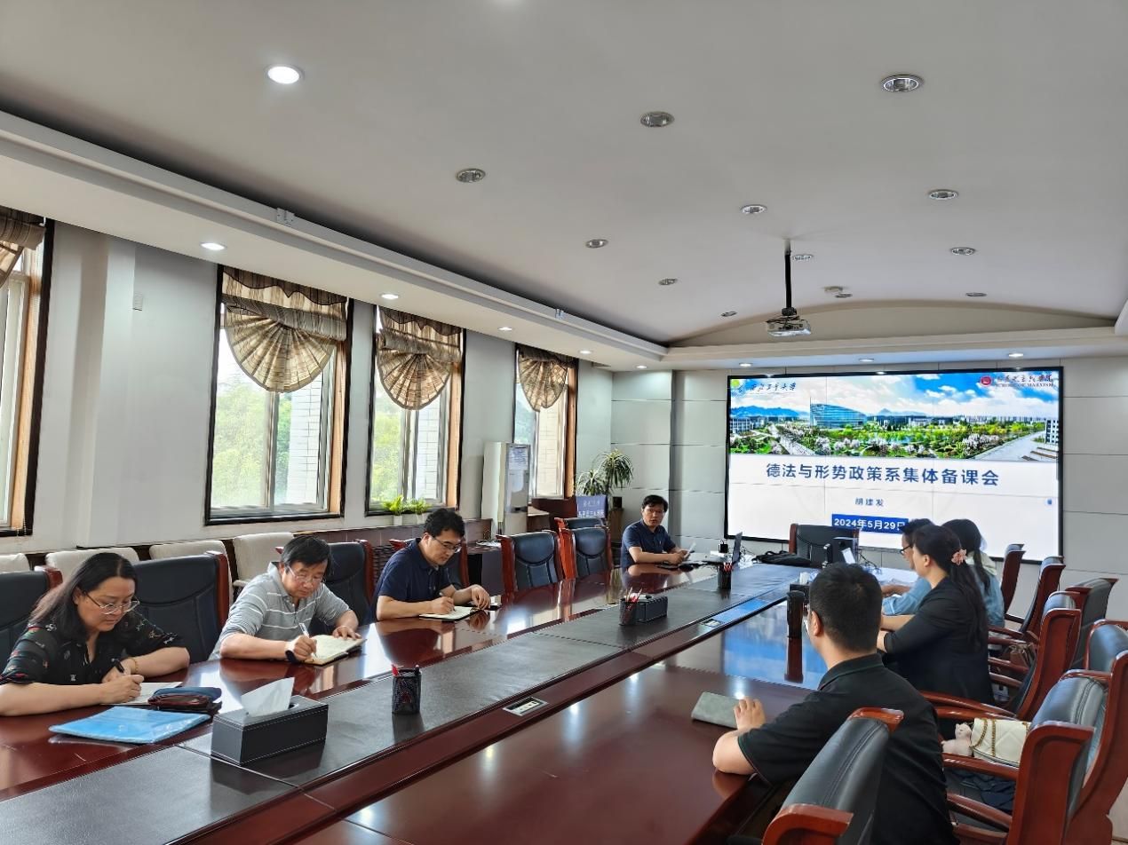 2024年5月29日,awc万象城体育德法与形势政策系开展集体备课活动,深入学习习近平总书记对学校思政课建设的重要指示精神。本次集体备课会由系主任胡建发主持。