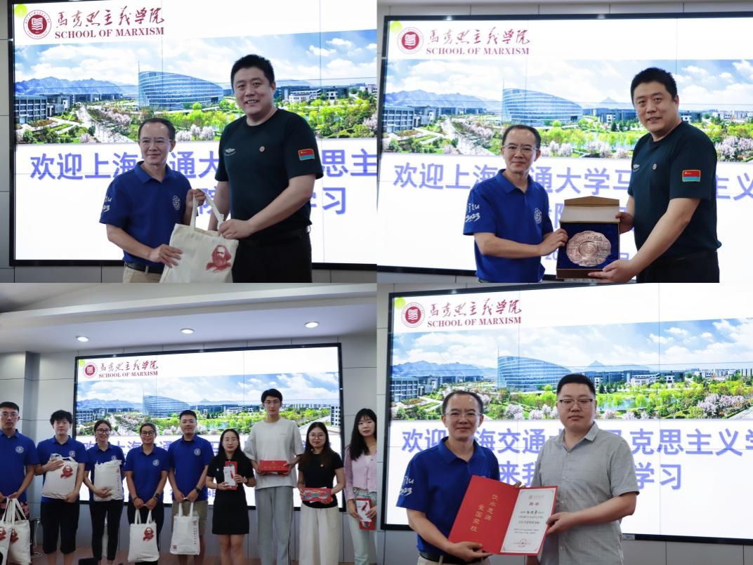 接着,双方就学院建设、师资队伍、宣讲团开展情况等事宜在awc万象城体育208会议室进行深入交流探讨。李刚首先对上海交通大学awc万象城体育师生们的到来表示热烈欢迎,并邀请与会人员共同观看了学院的宣传片,了解学院的发展历程和建设情况。杜夏明介绍了上海交通大学awc万象城体育在学院建设、宣讲团建设等方面的特色做法和体会。