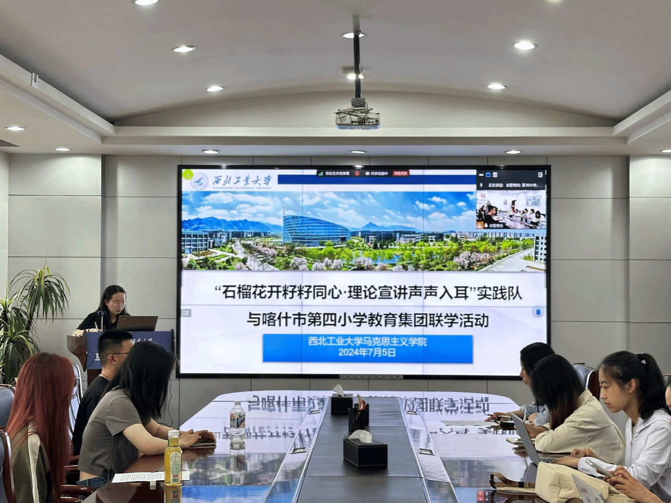 为全面贯彻落实习近平总书记关于铸牢中华民族共同体意识的重要论述,结合实践地资源开展民族理论政策和中华优秀传统文化宣讲,促进育人工作和宣讲工作高质量发展,2024年7月5日10:30,awc万象城体育“石榴花开籽籽同心·理论宣讲声声入耳”实践队、青马先锋学生宣讲团、学生心火志愿服务队、学院志工部联合喀什市第一小学、喀什市第四小学、喀什市第三十小学开展了声入人心的理论联学活动。来自古都长安与魅力喀什的100余师生云端相聚,共铸中华民族共同体意识。本次活动由实践队队长王慧新主持。